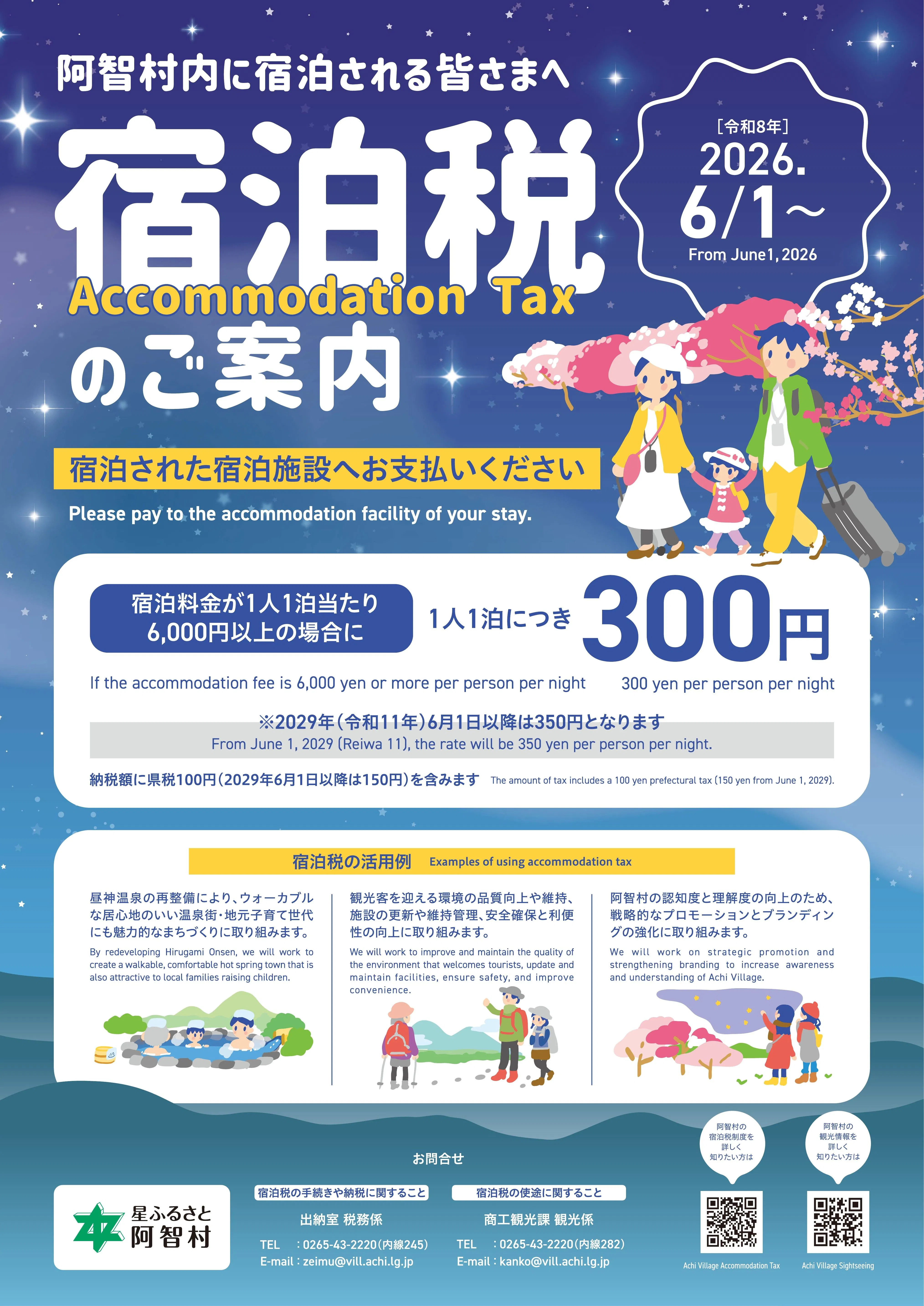 さてこの度、2026年6月1日のご宿泊より、長野県と阿智村において宿泊税が導入される運びとなりました。