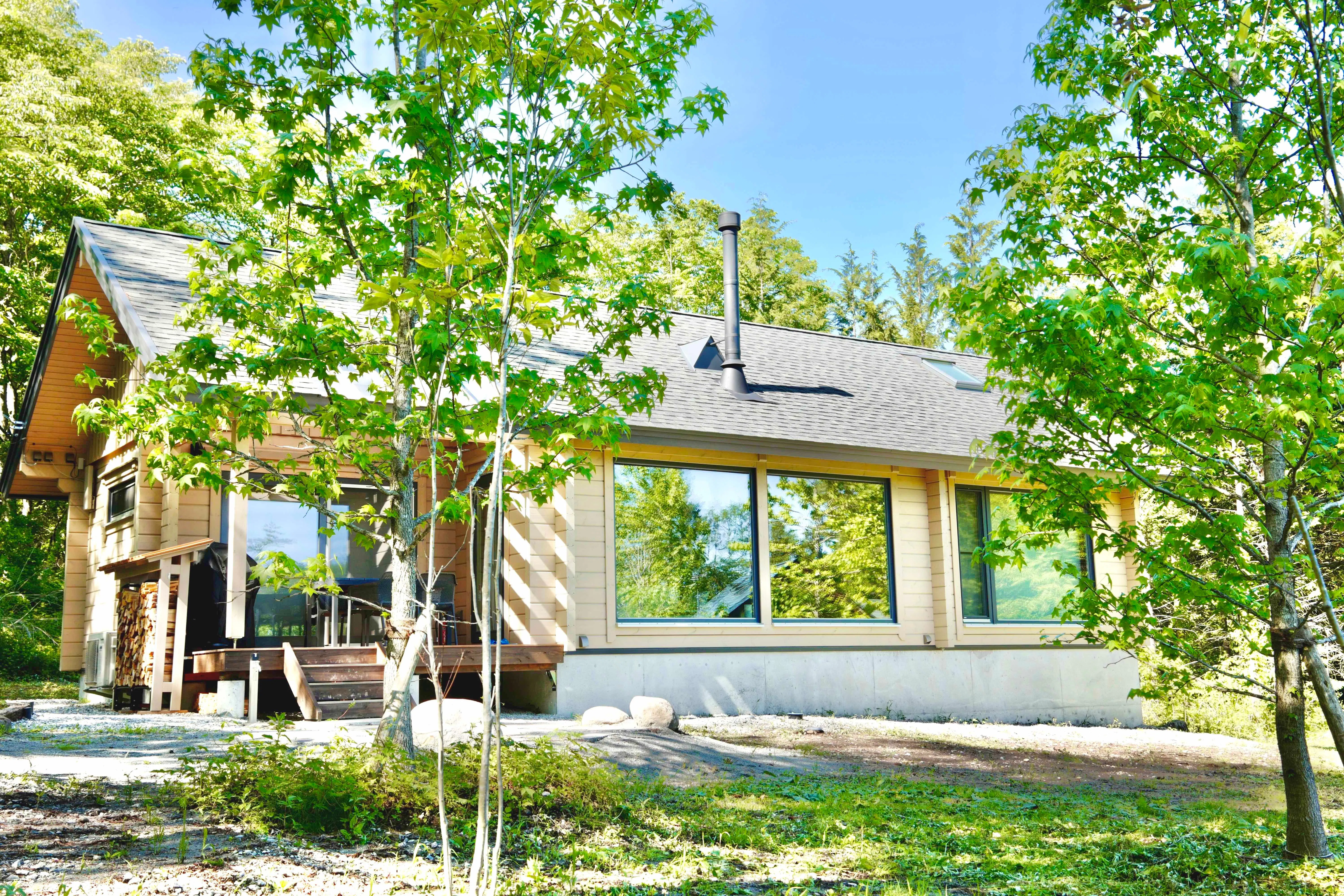 八ヶ岳の森に佇む、設備が充実したラグジュアリーモダンなログハウス