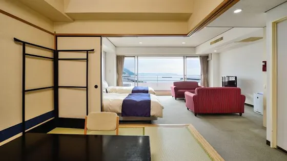 This was our first trip to Atami, and we stayed here as a couple. The staff were very helpful, and we were satisfied. Our Room was Japanese-style, and it was nice that it could be divided into separate spaces with sliding doors. We were a bit concerned that the toilet area had a step up. We were also happy with the view and had a very pleasant stay. Dinner offered a wide variety of dishes and was delicious, and the breakfast buffet also had an excellent selection. Thank you very much.
